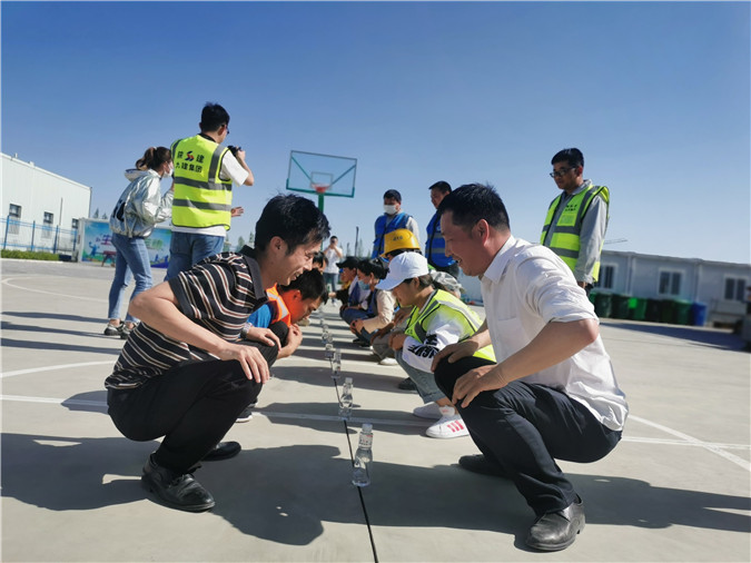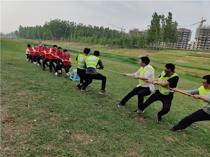 榆林市體(ti) 育中心(體(ti) 育場)項目“中國夢 勞動美 九建人 奮鬥時”主題趣味運動會(hui) 更是精彩紛呈,榆林市三館兩(liang) 中心項目的近六十名九建青年分為(wei) 5支代表隊接受著6項“特殊挑戰”。有考驗團隊協作的“一步之遙”、“摸石過河”與(yu) “水到渠成”,還有考驗反應速度的“教練說”和“搶東(dong) 西”項目以及現場爆笑不斷的“拔河比賽”,青春九建,魅力四射!