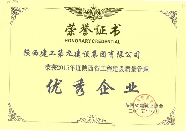 2015年度陝西省工程建設質量管理優秀企業-集團榮譽-企業文化-恩佐娱乐登陆