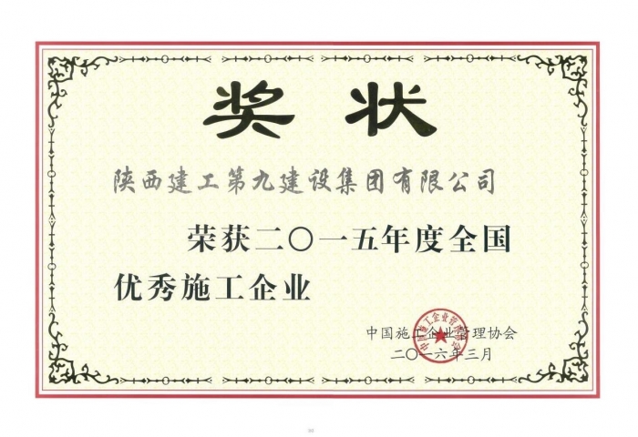 2015年度全國優秀施工企業-集團榮譽-企業文化-恩佐娱乐登陆