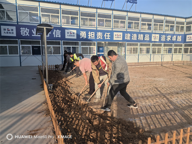 就在今天早上,項目部購買(mai) 了西紅柿、黃瓜、茄子、蓮花菜等100多株蔬菜苗,項目經理帶領著幾個(ge) 職工翻地、撒羊糞、起攏、定植苗子,幹得不奕樂(le) 乎。項目經理介紹說,每年他們(men) 都會(hui) 在這塊空地上種點菜。一是能美化環境;二是大家也可以吃上自己種的綠色蔬菜;第三也是最重要的一點,可以省下很多菜錢。據他說,他大概算了粗賬,這小小的一塊地最少能給他們(men) 省上差不多5000塊的菜錢。